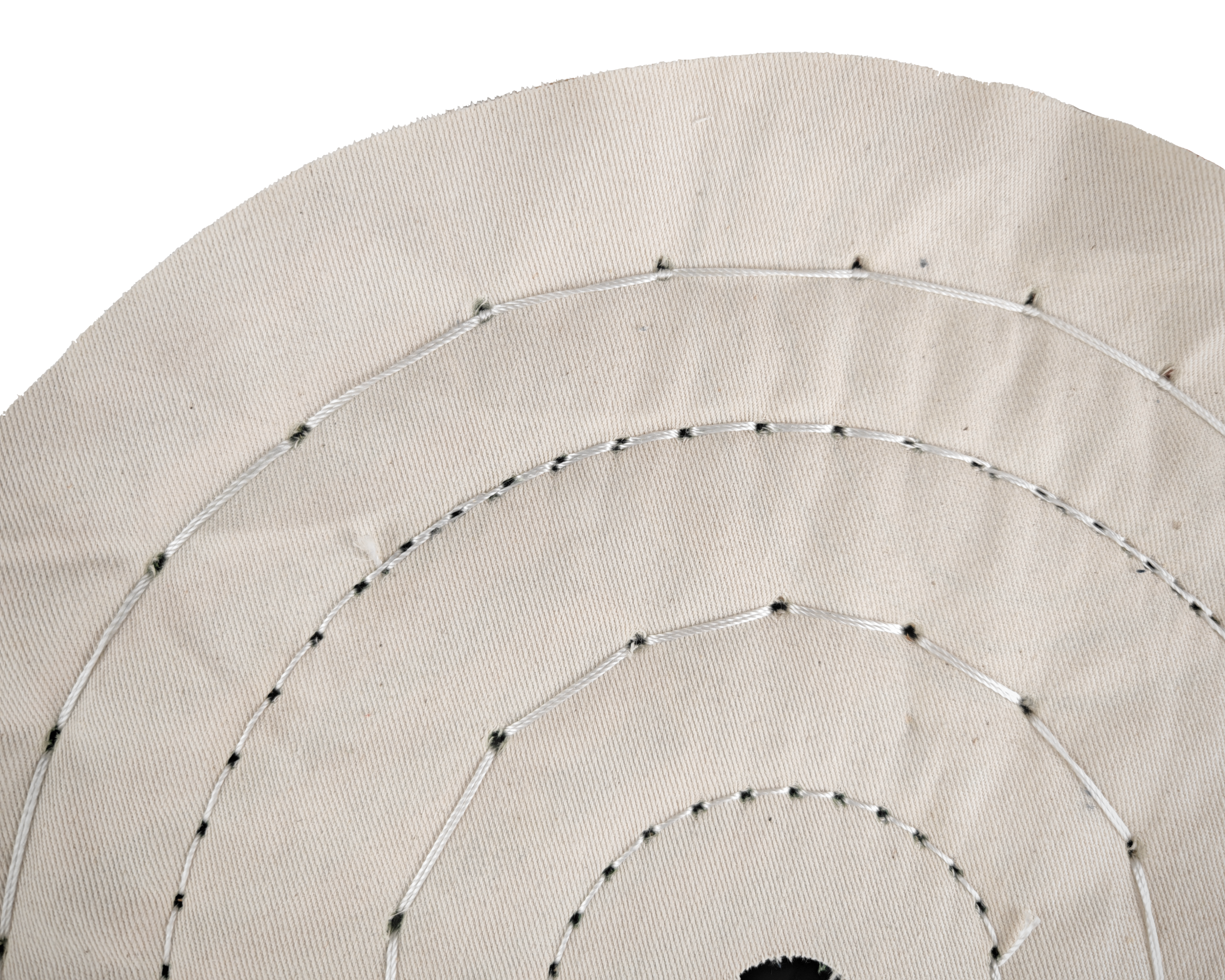 Poszczególne warstwy są ze sobą zszyte maszynowo. Wytrzymała nić i pewny szew gwarantują wysoką żywotność i trwałość tarczy polerskiej. Pod wpływem nacisku tarcza dopasowuje swój kształt do kształtu obrabianej powierzchni, dzięki temu doskonale nadaje się do polerowania detali o nieregularnych kształtach.